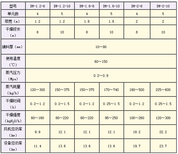 | 原理: 物料同加料器均勻地鋪在網(wǎng)帶上,網(wǎng)帶一般采用12~60目不銹鋼絲網(wǎng),由傳動(dòng)裝置拖動(dòng)在干燥機(jī)內(nèi)移動(dòng)。干燥機(jī)由若干單元組成,每一單元熱風(fēng)獨(dú)立循環(huán),部分尾氣由專(zhuān)門(mén)排濕風(fēng)機(jī)排出,廢氣由調(diào)節(jié)閥控制,熱氣由下往上或由上往下穿過(guò)鋪滿(mǎn)物料的網(wǎng)帶完成熱量與質(zhì)量傳遞的進(jìn)程,帶走物料水份。網(wǎng)帶緩慢移動(dòng),運(yùn)行速度可根據(jù)物料溫度自由調(diào)節(jié),干燥后的成品連續(xù)落入收料器中。上下循環(huán)單元 根據(jù)用戶(hù)需要可靈活配備,單元數(shù)量亦可根據(jù)需要選取。 應(yīng)用: 脫水蔬菜、顆粒飼料、味精、椰蓉、有機(jī)顏料、合成橡膠、丙稀纖維、藥品、藥材、小木制品、塑料制品、電子元器件老化、固化等。 技術(shù)參數(shù): ![]() |